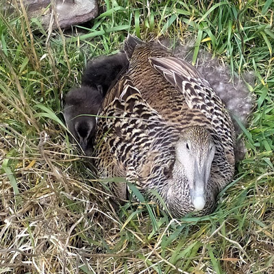 kolme poikasta kuoriutua. Haahkat ovat kotkia, haukkoja ja muita saalistajia paossa saarella, jossa yllättävää kyllä - ihmiset takaavat pesintärauhan!